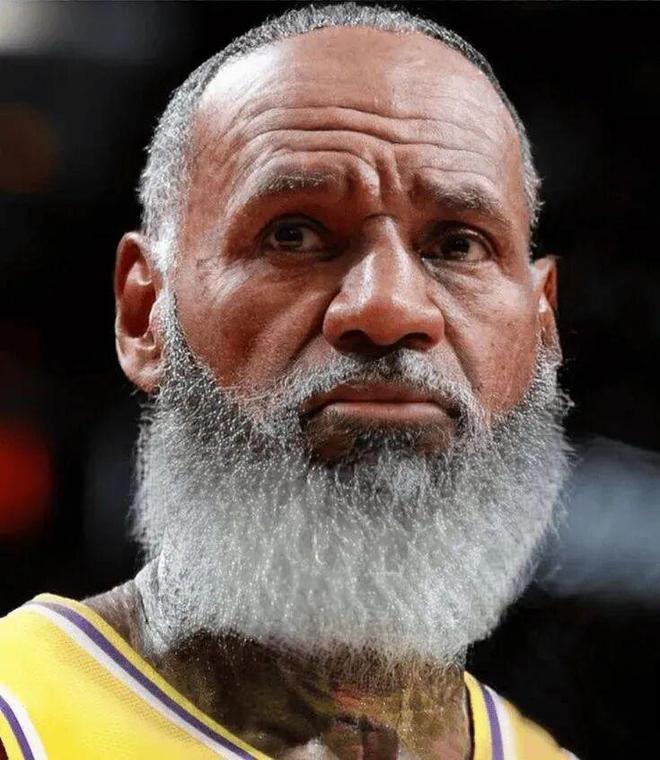 美媒晒出詹姆斯白胡子照调侃:詹姆斯终于老了。