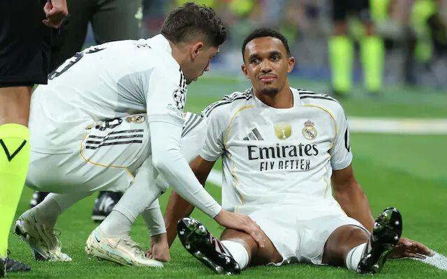 在本轮皇马3-0击败毕尔巴鄂的西甲比赛中,阿诺德首发出场并助攻姆巴佩进球。但在比赛第54分钟,阿诺德传球后疑似崴到脚,主动示意换人,阿森西奥替补出场。赛后,皇马官方宣布,阿诺德左腿股四头肌前直肌受伤,具体恢复情况有待进一步观察。据科贝电台消息,阿诺德预计伤缺2个月时间。